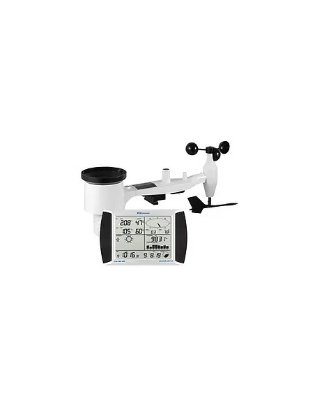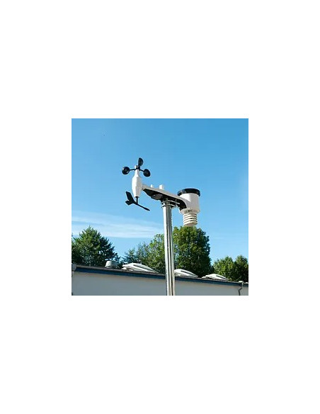 Station météorologique sans fil pour la mesure de la direction du vent, la vitesse du vent, la température, l'humidité relative et la pluviosité / Fonction d'alarmes réglables / Interface USB / Logiciel d'analyse / Module solaire et batterie pour l'alimentation de l'émetteur / Fréquence de transmission: 868 MHz