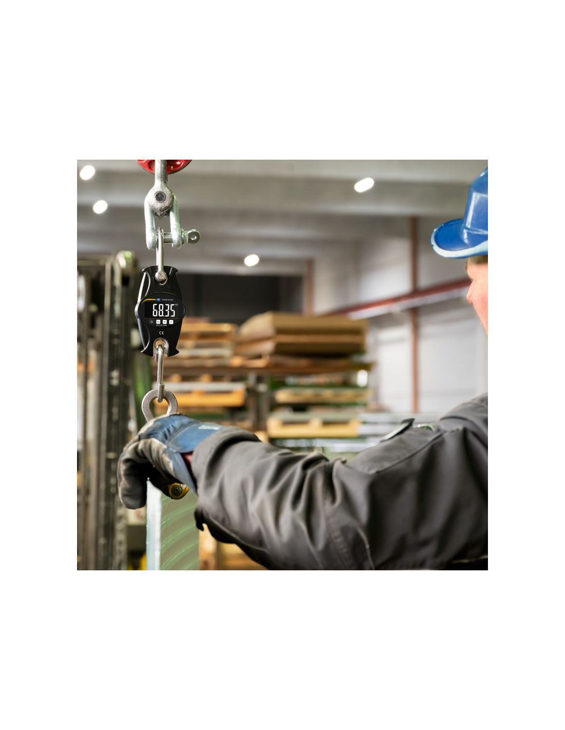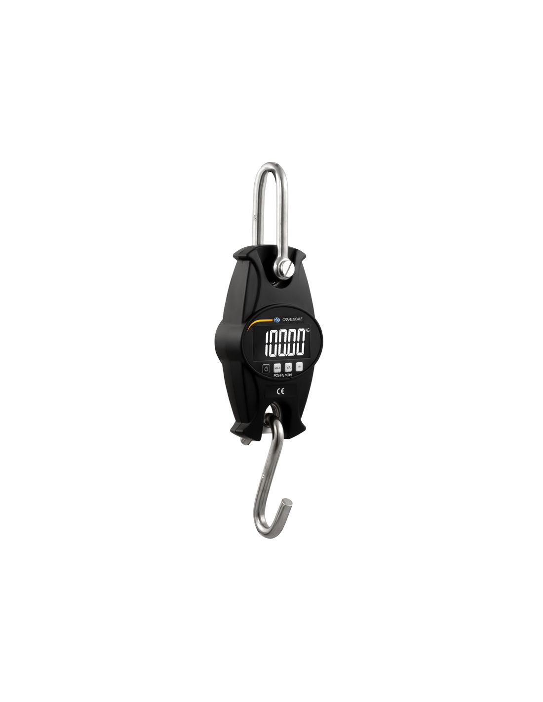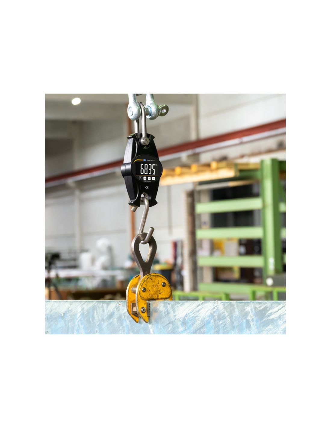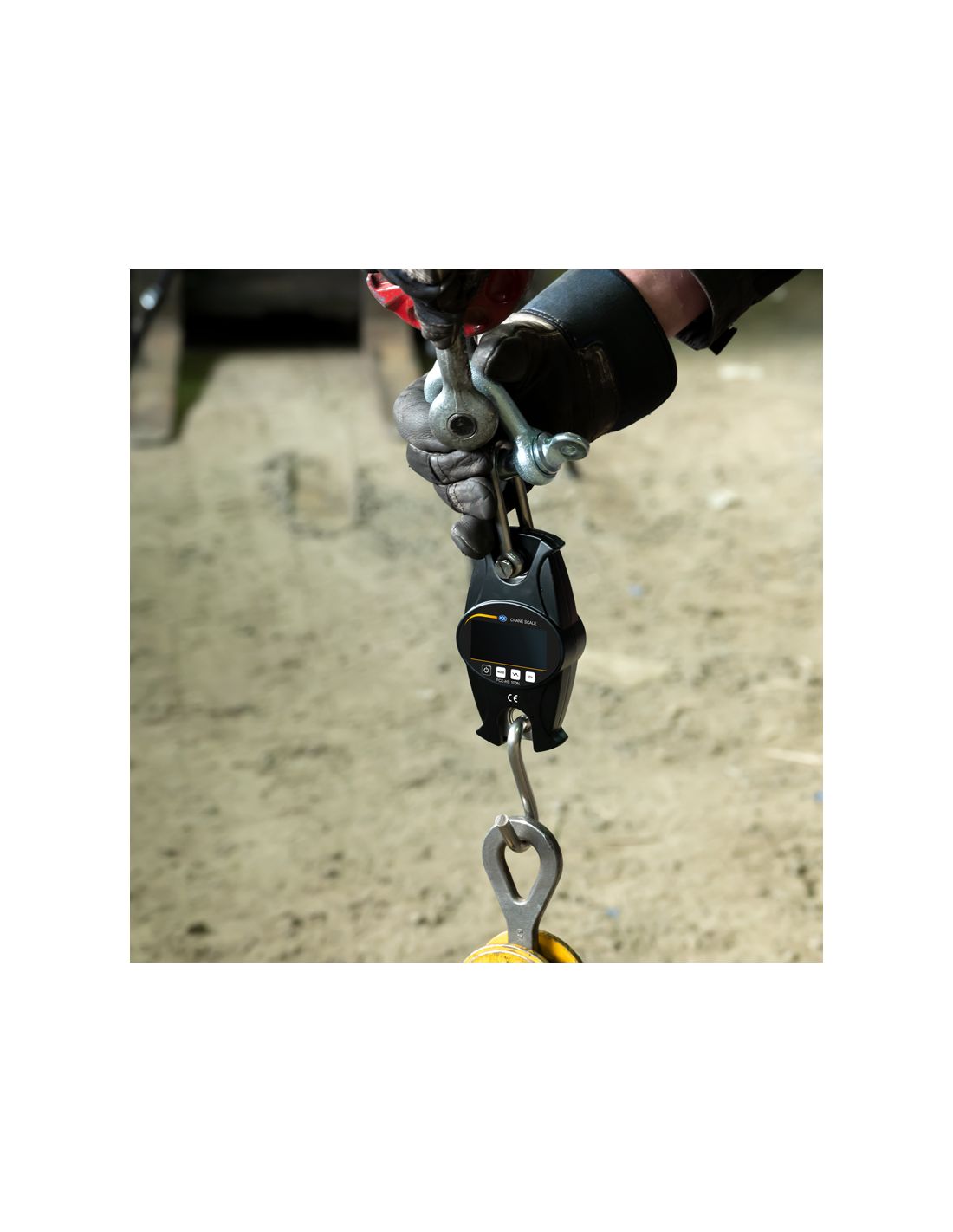 Balance à grue avec boîtier métallique / Plage : 0 ... 100 kg / Arrêt automatique après 15 minutes d'inactivité / Fonctionne sur pile / Fonction "HOLD" / Hauteur chiffres : 22 mm / Unités : kg, lb, N / Certificat d'étalonnage en option La balance à grue pèse dans une plage de 0 à 100 kg. La balance a grue est un instrument de mesure exact puisqu'elle pèse avec une précision de ±1 % F.S. L'écran LCD possède des chiffres de 22 mm de hauteur. Ceci, combiné au fait que l'écran dispose de rétroéclairage, permet que l'utilisateur lise les valeurs à distance, même dans des endroits sombres. Grâce au boîtier métallique résistant, vous pouvez utiliser la balance à grue même dans des environnements de travail difficiles. La balance à grue indique le poids en kg ainsi que dans les unités lb et N. La balance à grue intègre la fonction Hold qui fige la valeur de mesure sur l'écran. L'adaptateur, le crochet et d'autres accessoires de pesage ont leur propre poids. Pour simplifier le pesage, la balance à grue peut tarer ce poids juste en appuyant sur un bouton. La balance à grue fonctionne avec deux piles de 1,5 V, de type AAA, ce qui permet un usage mobile. Pour prolonger l'autonomie des piles, la balance à grue dispose de la fonction d'arrêt automatique après 15 minutes d'inactivité. En option, vous pouvez commander à PCE Instruments un certificat d'étalonnage ISO pour cette balance à grue.