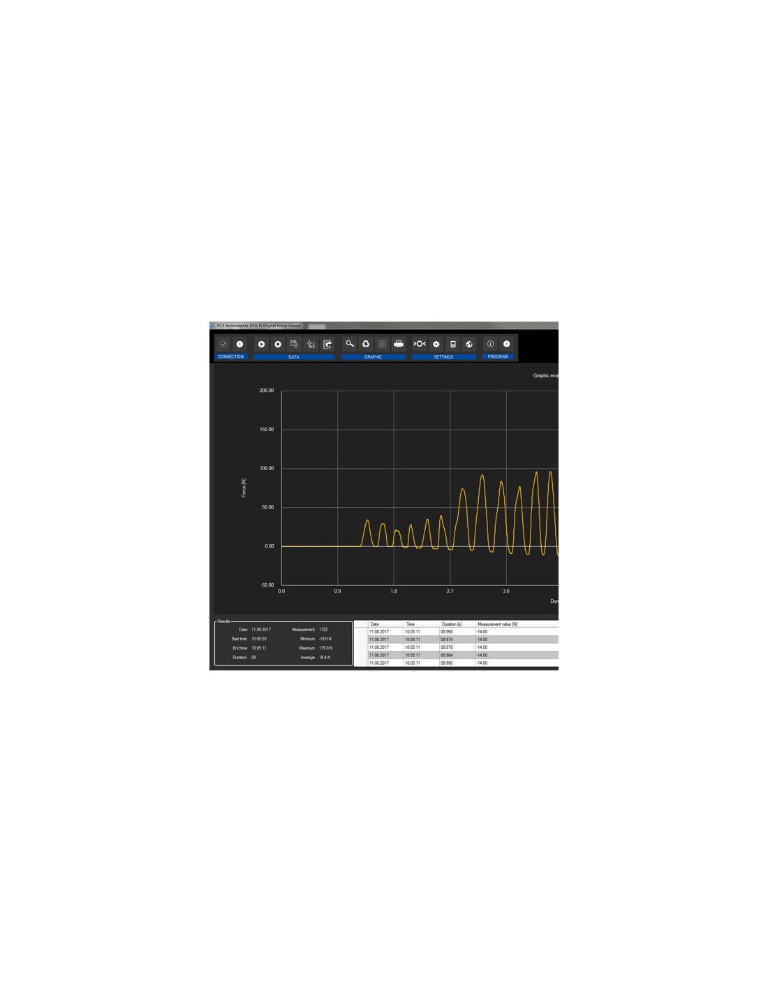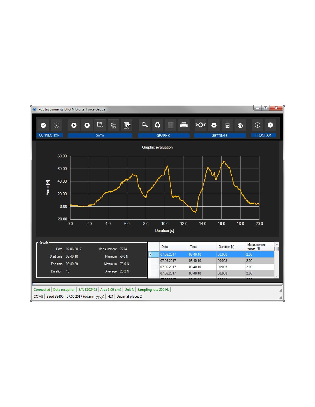 Dynamomètre numérique série PCE-DFG N Avec cellule de charge externe de 1000 N et port USB pour connexion au PC Le dynamomètre mesure les forces de traction et de compression avec une haute résolution. Il est souvent nécessaire de mesurer les forces de traction et de compression en laboratoire, par exemple, pour déterminer les forces de parcours, de rupture ou la force nécessaire pour appuyer sur un bouton ou une touche. Le dynamometre est livré avec une cellule de charge externe. Selon le modèle, elle peut mesurer jusqu'à 10000 N. Il existe aussi des modèles de 1000 N, 2500 N ou de 5000 N. Les cellules de charge peuvent être équipées de boulons ou de crochets filetés M10 ou M12. Cela permet de pouvoir adapter différents de nos appareils en utilisant ces crochets. Le dynamomètre est équipé d'un port USB, qui permet de transférer les valeurs de mesure sur l'ordinateur. Grâce à cela, vous pourrez réaliser des protocoles de mesure, les sauvegarder et les exporter. Le dynamomètre possède un écran graphique LCD qui montre les valeurs en format numérique et graphique. Le dynamomètre dispose d'une protection IP54 qui permet de l'utiliser dans des environnements industriels adverses, ainsi que de réaliser des tests de traction et de compression à l'extérieur, même dans des conditions climatologiques adverses. Il existe différents bancs d'essai adaptés à ce dynamomètre. L'une des particularités du dynamomètre série PCE-DFG N est qu'il permet d'interchanger les cellules de charge. Il suffit d'indiquer dans l'appareil la sensibilité en mV/V et vous pourrez connecter n'importe quelle cellule de charge à l'appareil portable.