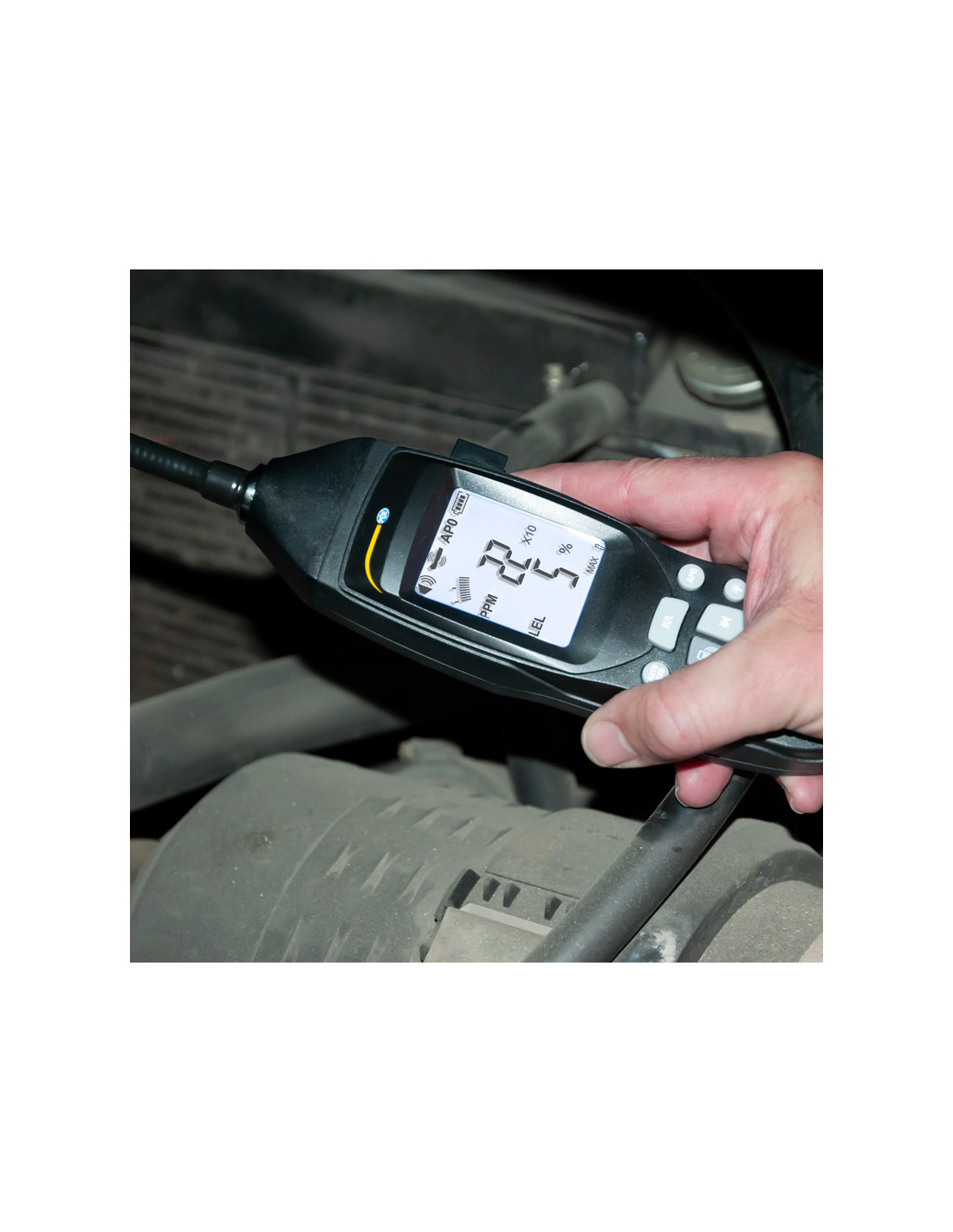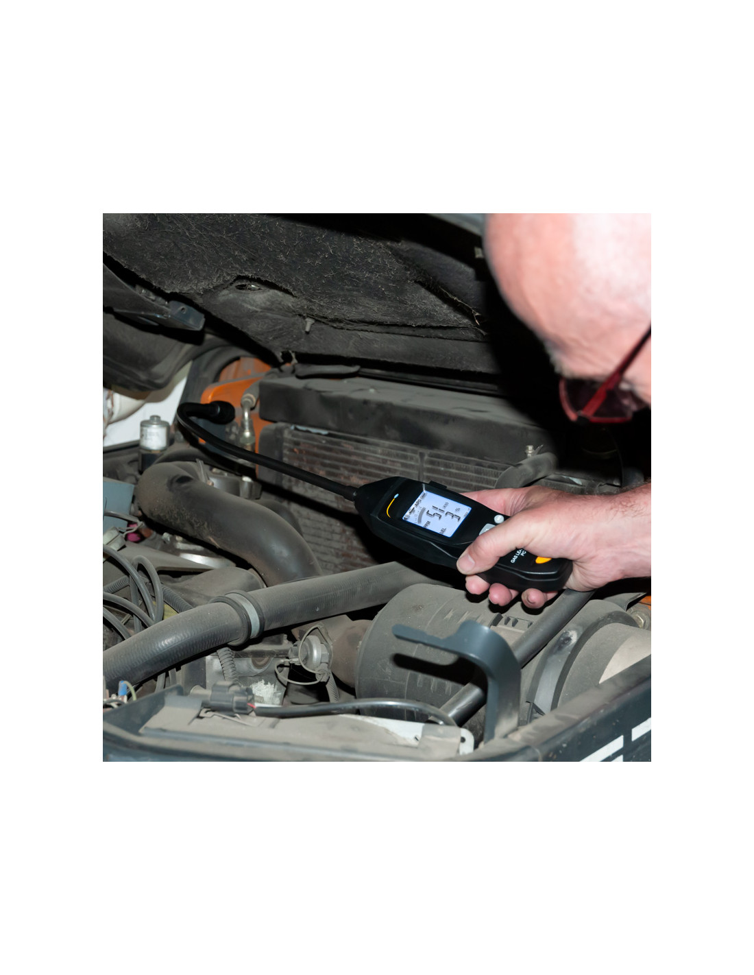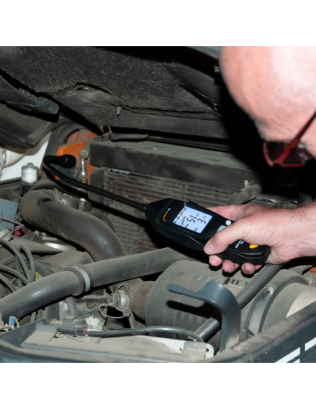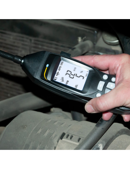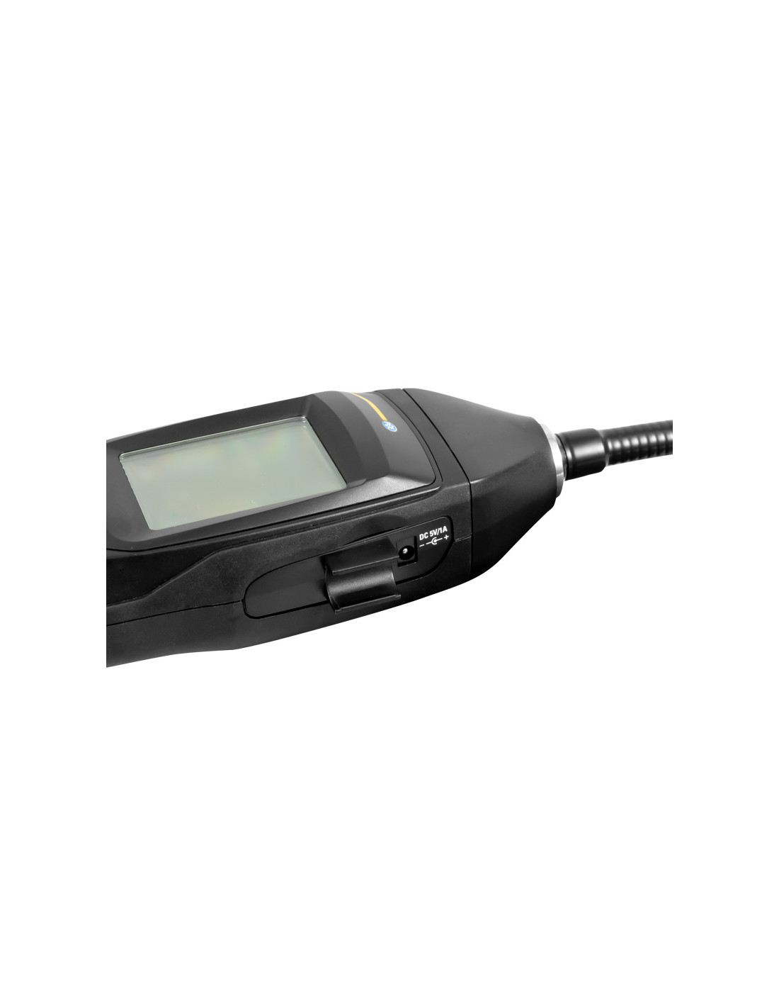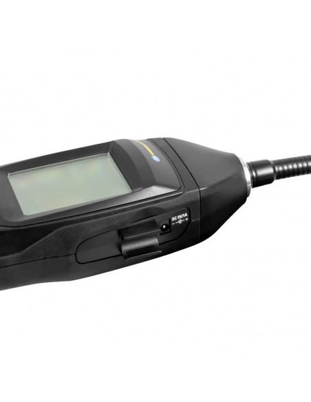 Grâce à la sonde semi-rigide du détecteur de gaz combustibles, il est possible d'orienter le capteur dans pratiquement n'importe quelle position et de mesurer dans des endroits difficiles d'accès. Grâce à cela, le détecteur de gaz combustibles est l'outil parfait pour détecter la présence ou les fuites de gaz (vérification des systèmes lors du contrôle de l'usine, vérification des moteurs et des tuyauteries ou des conduites de gaz). Il n'est pas nécessaire de régler manuellement le détecteur de gaz combustibles, puisque cet appareil s'étalonne automatiquement.