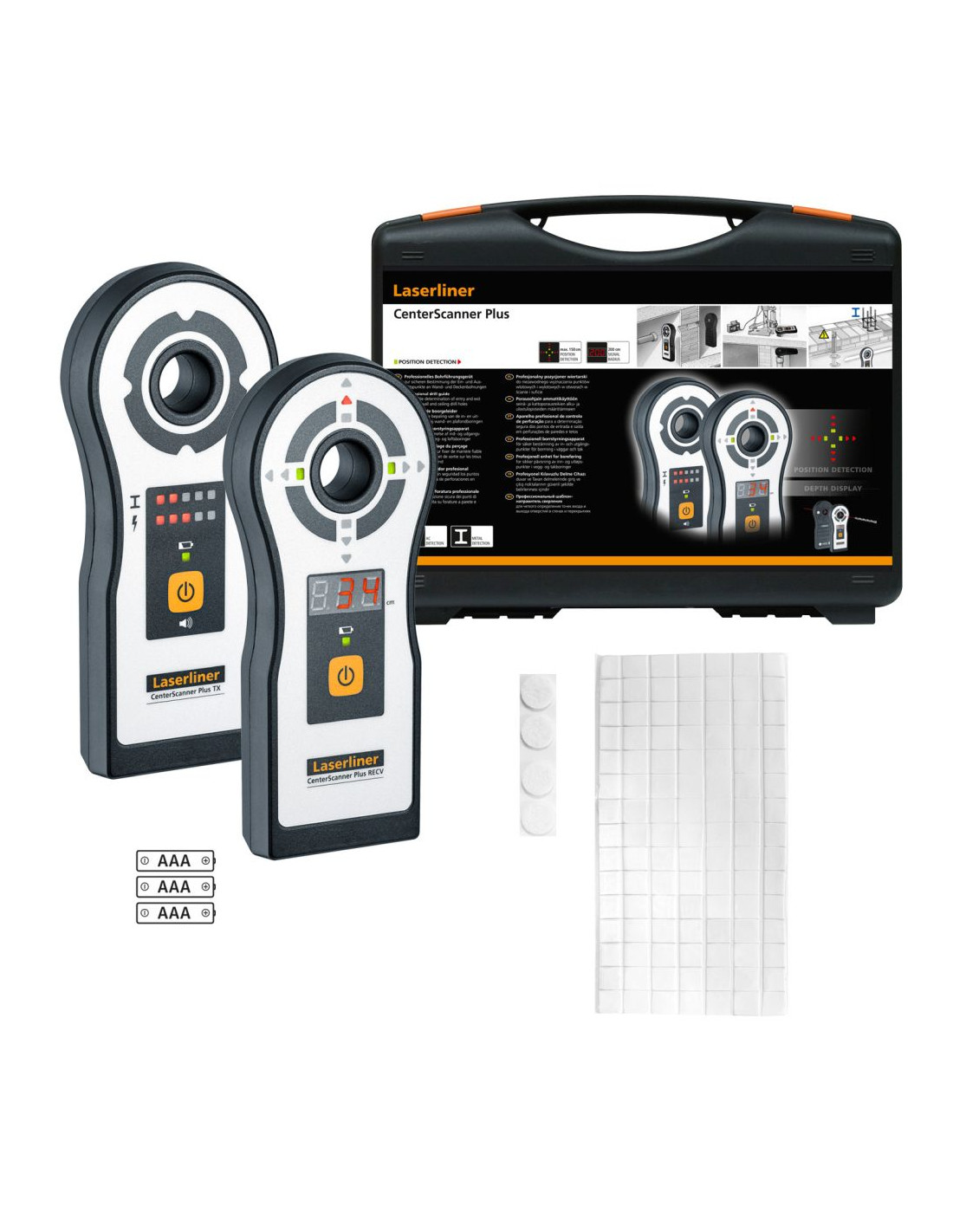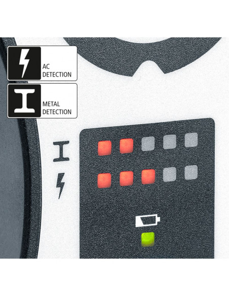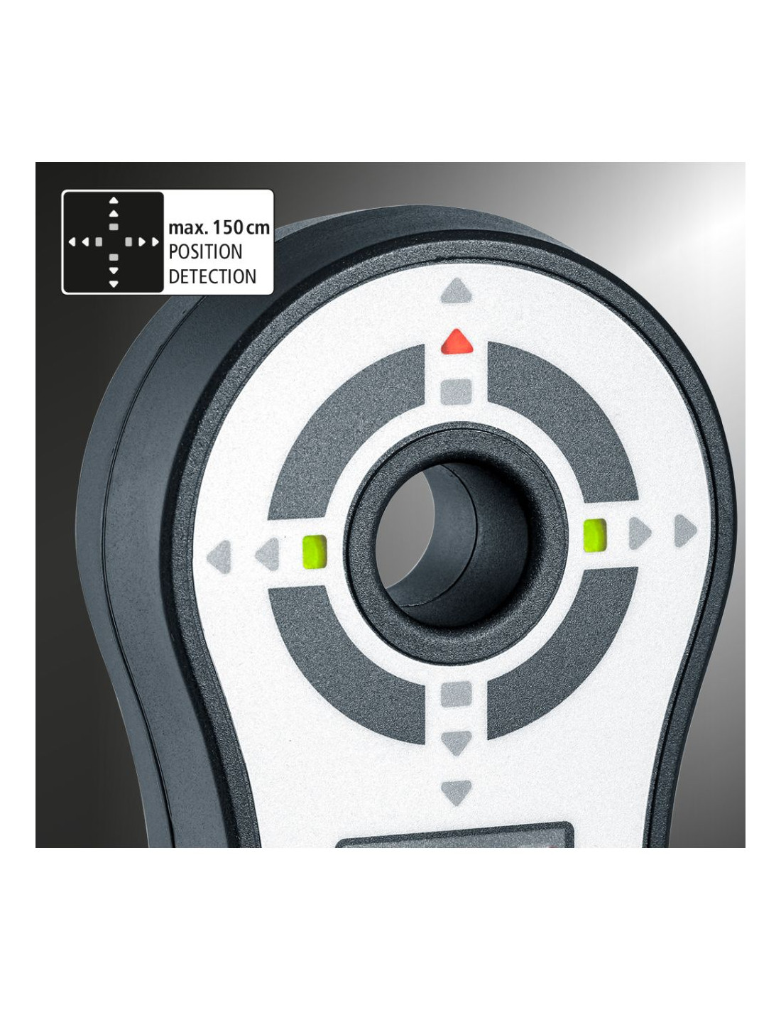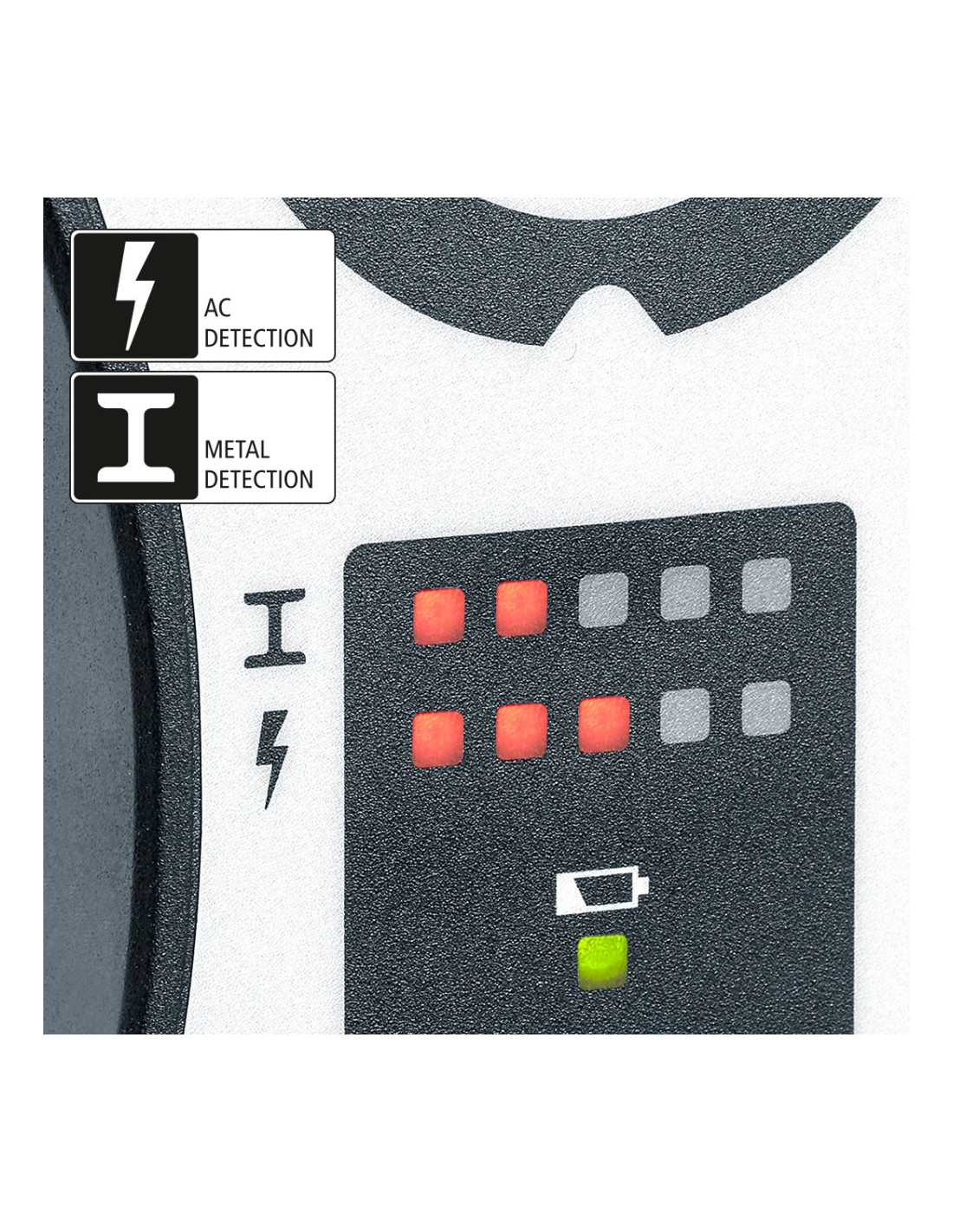 L’appareil de guidage du perçage précis composé d’un émetteur et d’un récepteur, permet un alignement sûr du canal de perçage sur les trous aux murs et au plafond jusqu’à 150 cm. La localisation s’effectue grâce à des indicateurs à DEL bien visibles et des signaux sonores. Des repères de marquage facilement accessibles dans l’émetteur et le récepteur servent au centrage. L’écran LCD intégré permet de déterminer la profondeur de perçage nécessaire jusqu’à 200 cm. L’émetteur TX avec identification intégrée de la tension et du métal permet d’éviter efficacement les perçages erronés. Lors de la détection d’objets étrangers, un avertissement visuel et sonore est émis.