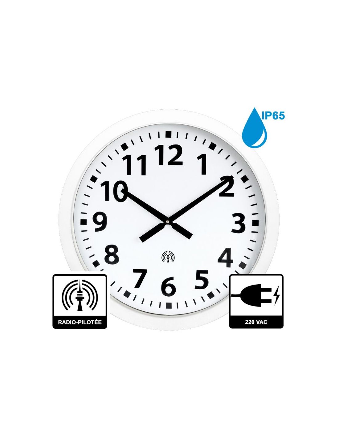 Horloge Ø 600 mm - Verre minéral - Sur secteur - ABS blanc - Etanche IP65 - Radio-pilotée