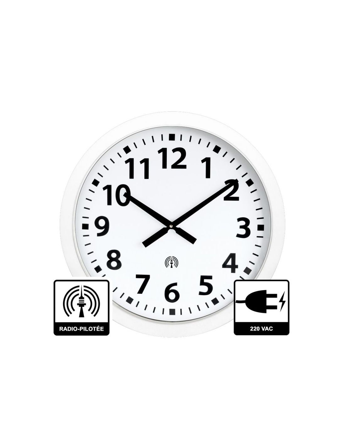 Horloge Ø 600 mm - Verre minéral - Sur pile - ABS blanc - Radio-pilotée