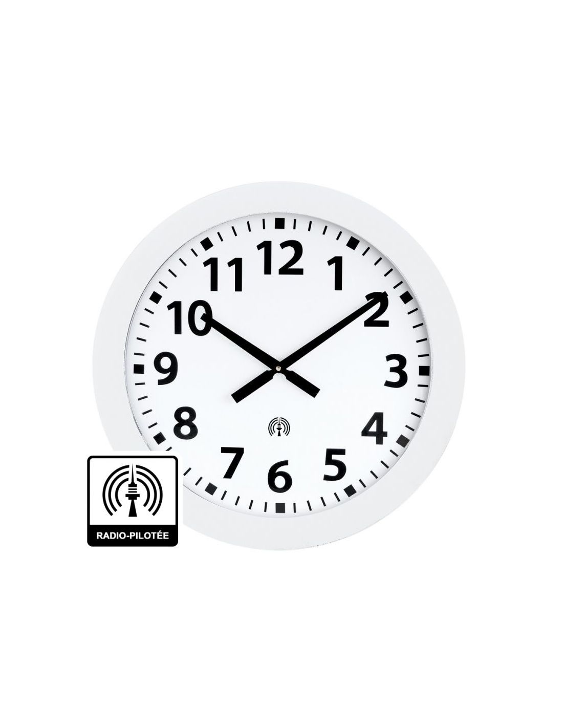 Horloge Ø 600 mm - Verre minéral - Sur pile - ABS blanc - Radio-pilotée