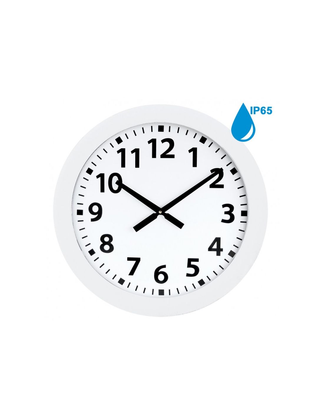 Horloge Ø 600 mm - Verre minéral - Sur secteur - ABS blanc - Etanche IP65