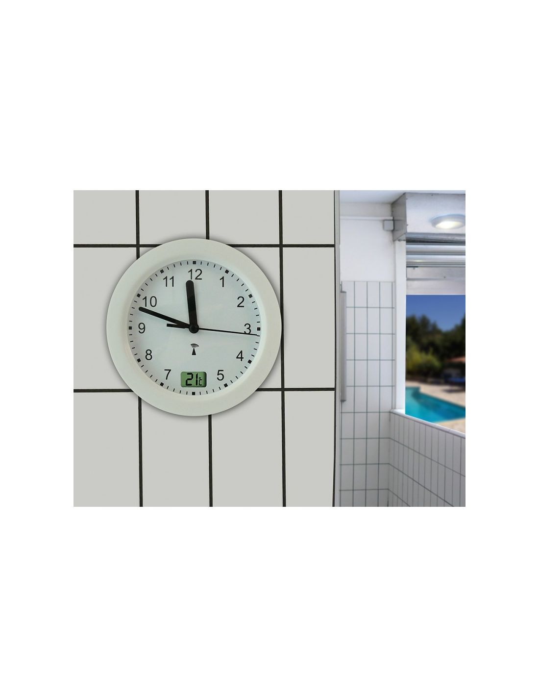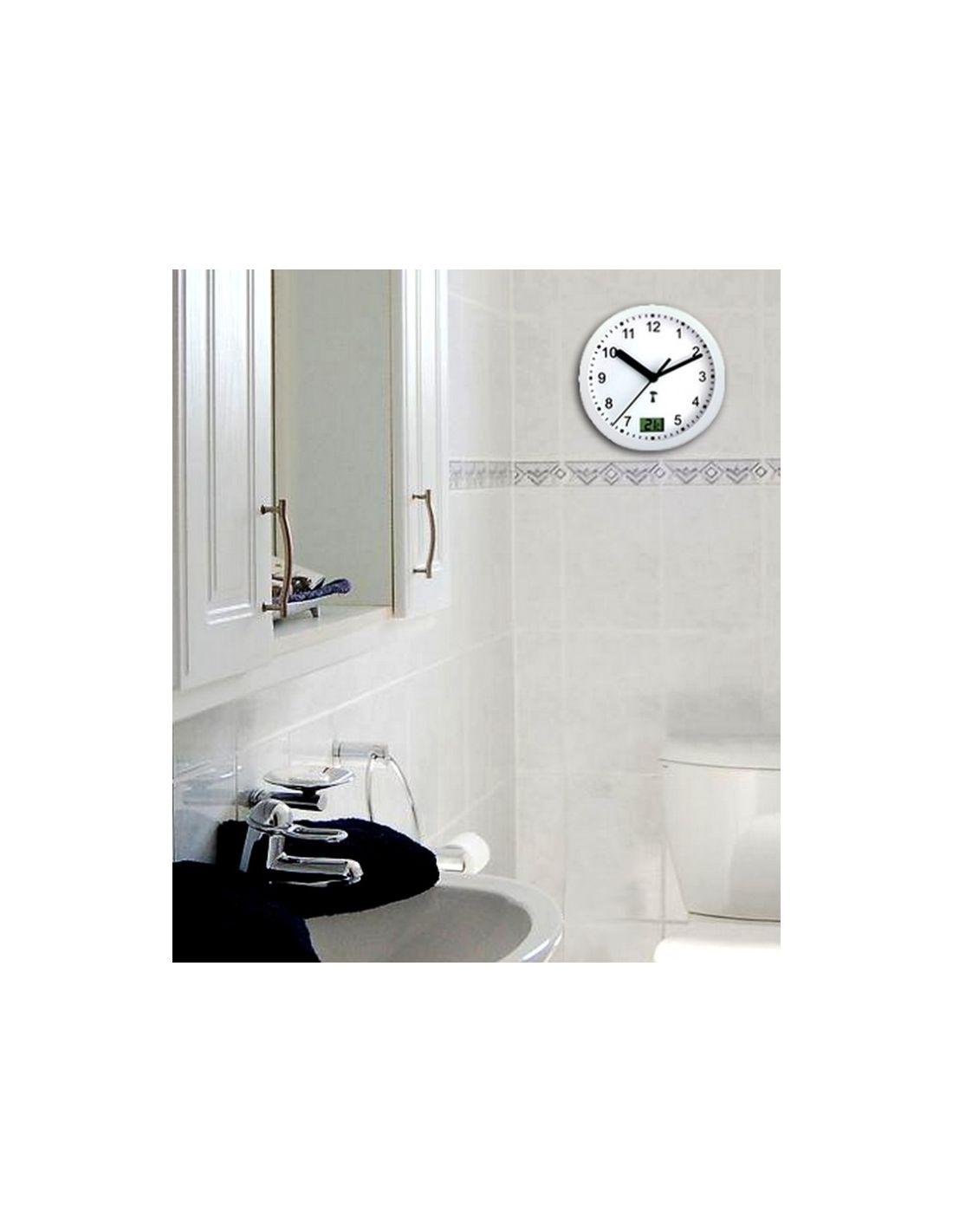 Horloge Ø 170 mm - Etanche IP54 - Thermomètre - Sur pile - ABS blanc