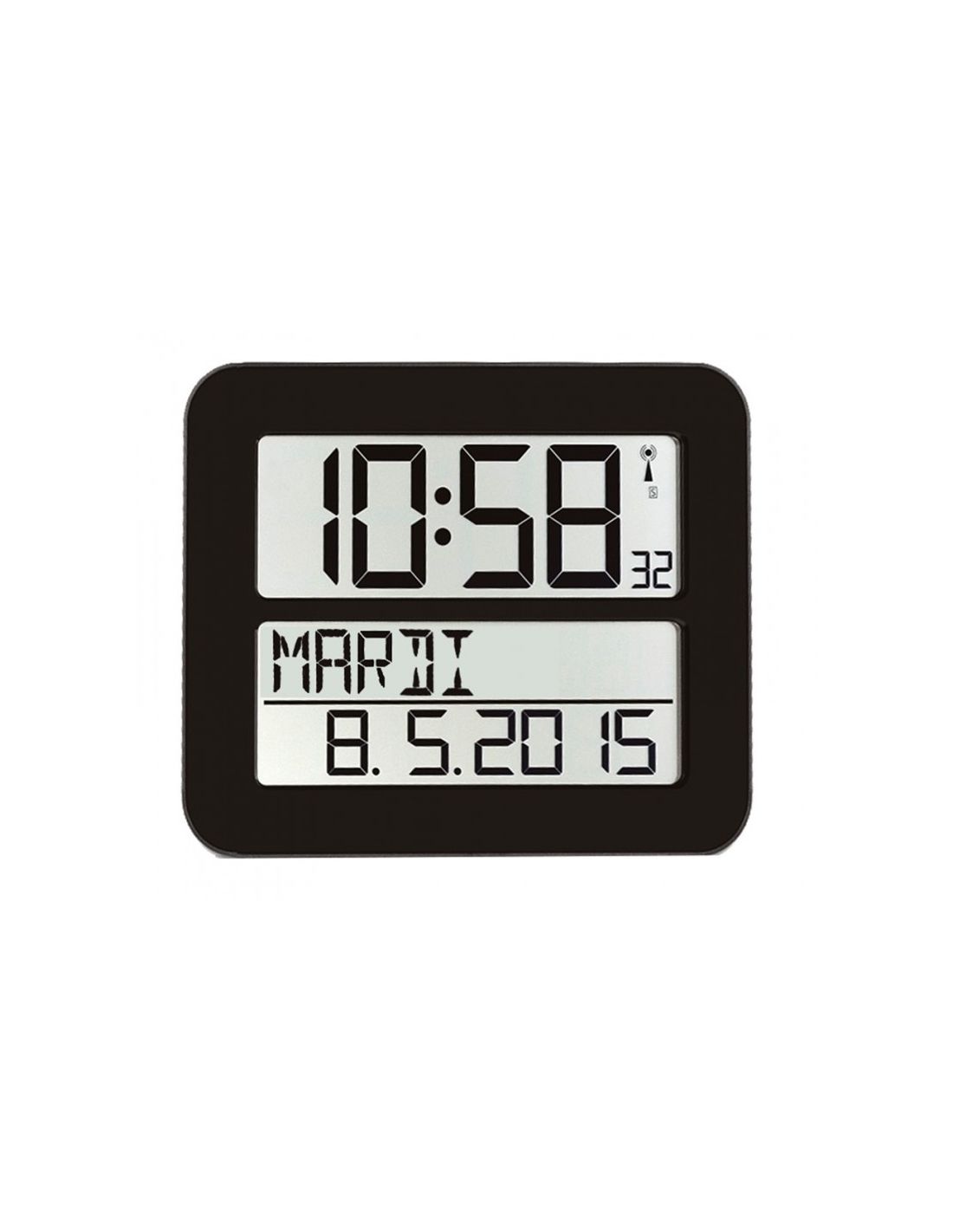 Horloge LCD - Radio-pilotée - Coloris noir
