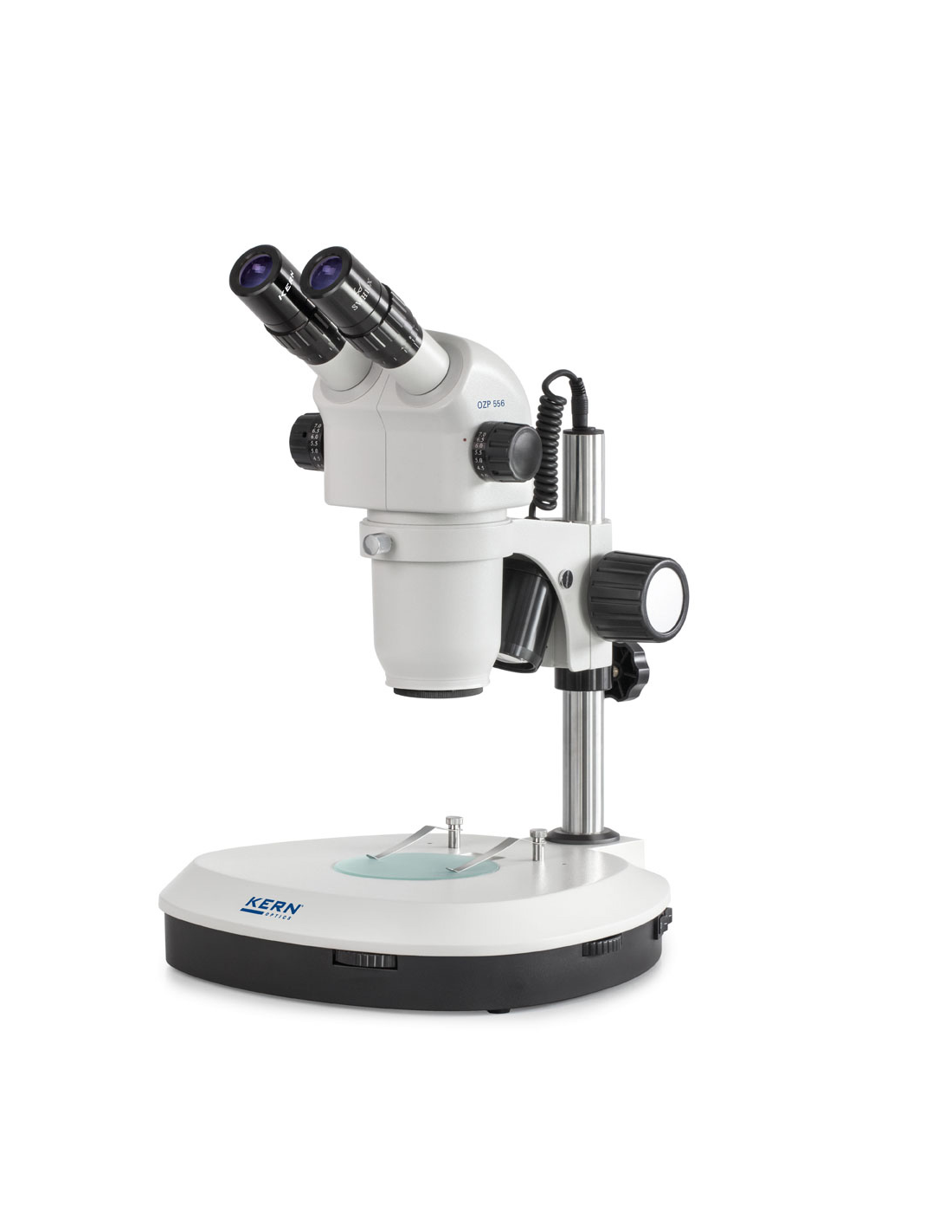 - Le microscope stéréo avec fonction zoom KERN OZP 556 se distingue par sa plage de grandissement supérieure à la moyenne et sa robustesse ainsi que par sa forme ergonomique qui permet un travail aisé et simple pendant plusieurs heures.