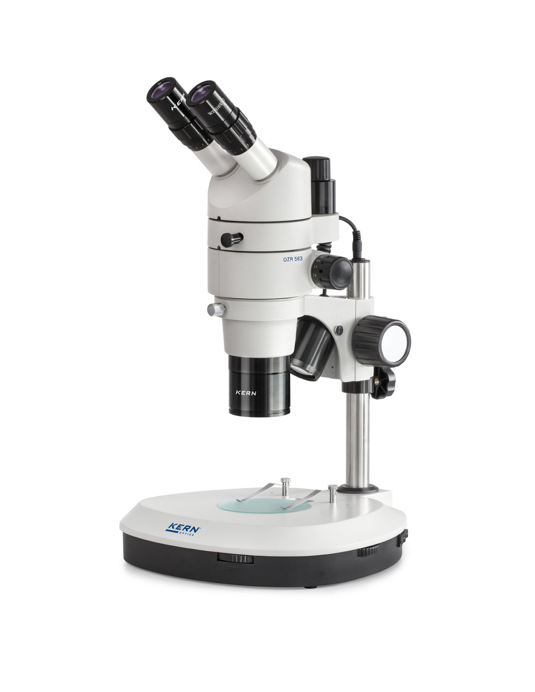 - La série KERN OZS robuste et réglable en continu est disponible en variante 3W LED à lumière incidente et transmise pour un éclairage optimal de votre échantillon ou en variante sans éclairage