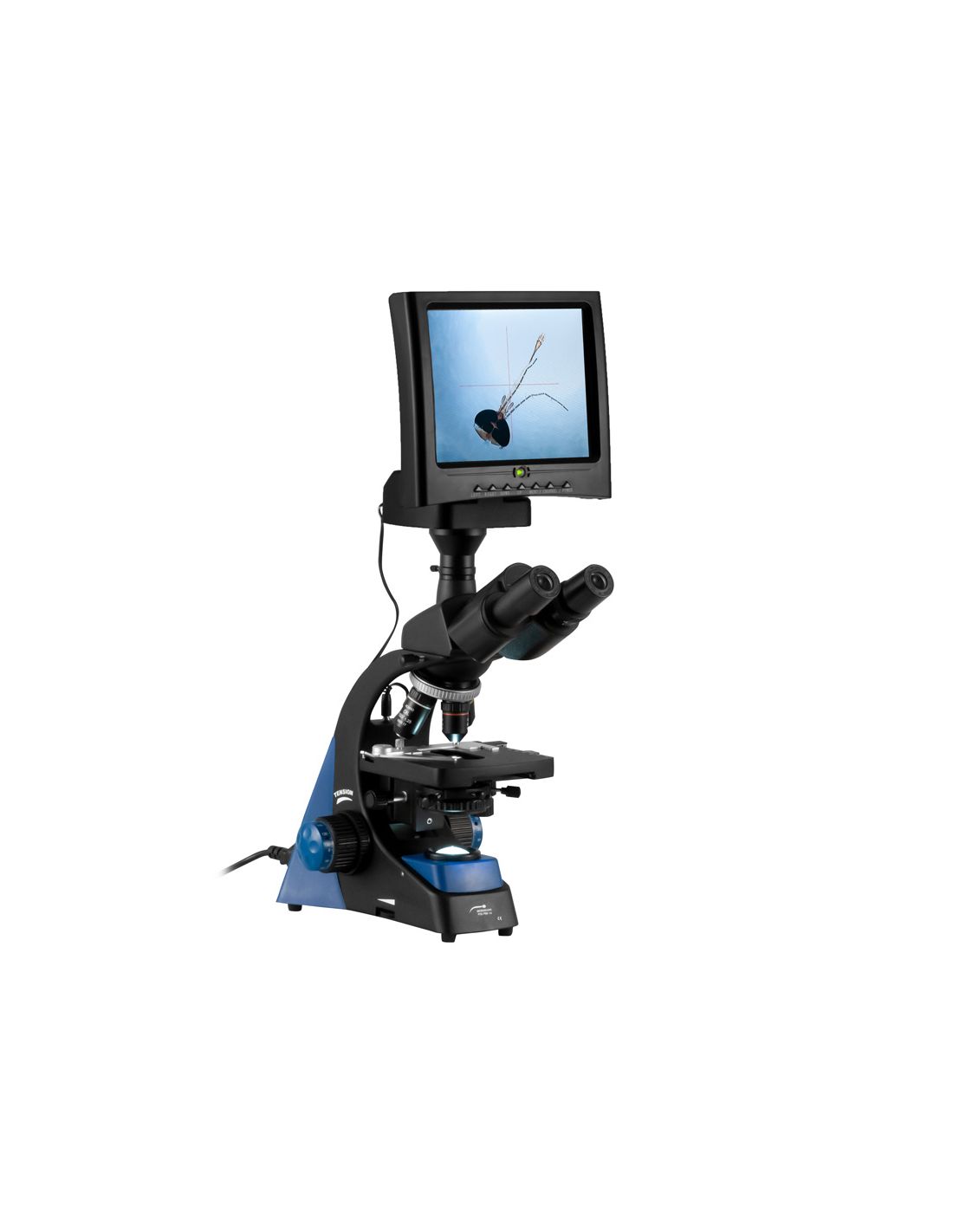 - Microscope de recherche de grande qualité / Support moderne et ergonomique / Trinoculaire / Tête pivotante sur 360º avec réglage de la distance de vision / Compensation dioptrique / Écran LCD