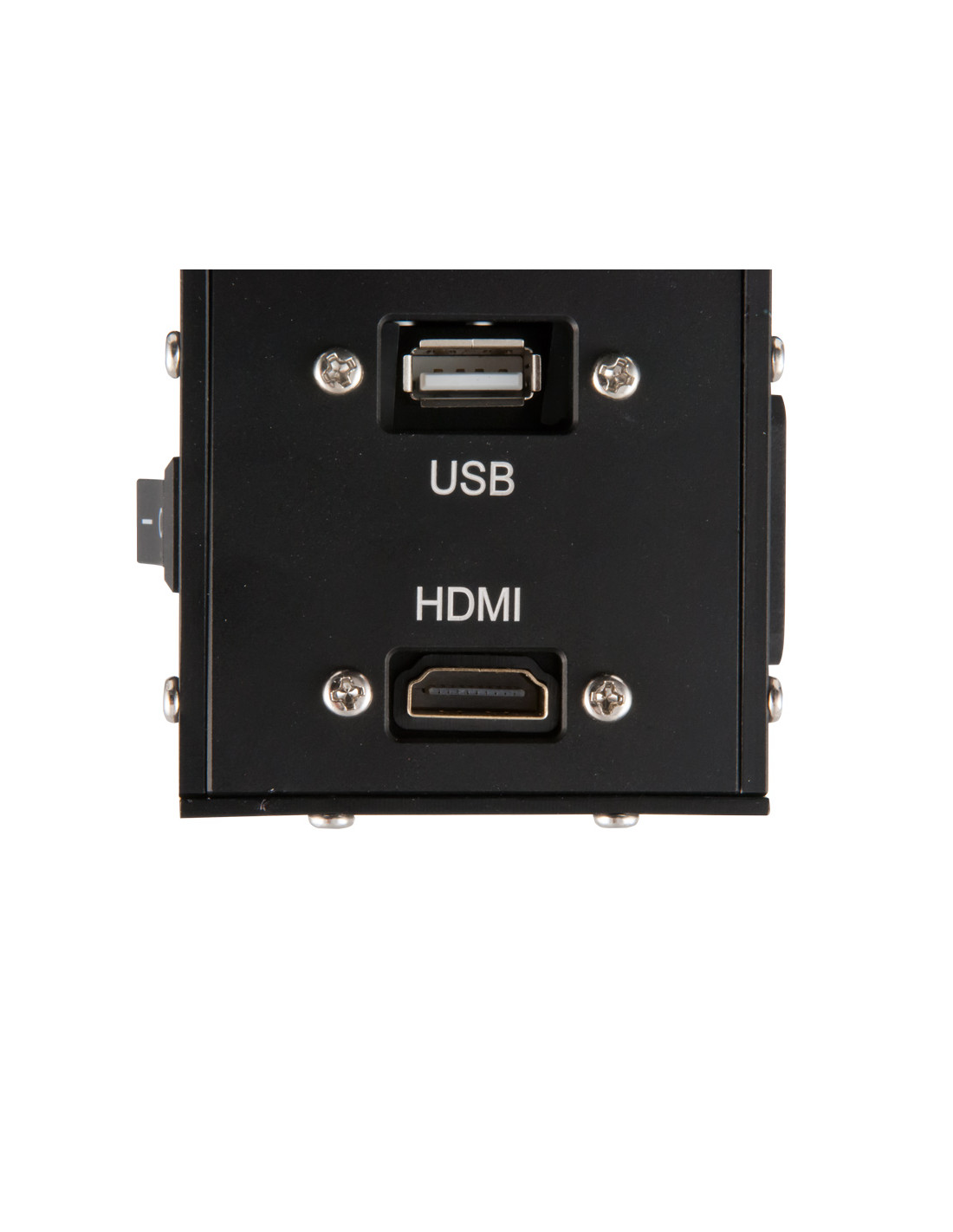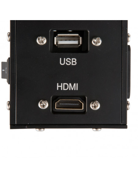 Le moniteur, inclus dans l'envoi, se connecte au vidéo-microscope via l'interface HDMI. Sur demande, vous pouvez aussi connecter au vidéo-microscope d'autres moniteurs ayant une résolution de 1080 pixels. La mise au point automatique du vidéo-microscope garantit une visualisation d'images plus nettes de n'importe quel objet. Lorsque le mode de mise au point automatique est activé, le vidéo-microscope refait la mise au point de l'image lorsqu'elle n'est pas nette. Le fabricant a équipé le vidéo-microscope d'un mode de mise au point par clic. Cette fonction permet de viser la zone de mise au point (AF-ROI) ensuite, la position est figée. Lorsque vous changerez d'échantillon, il ne sera pas nécessaire de faire une nouvelle mise au point. Le mode de mise au point manuelle vous permet de faire vous-même le réglage. La position du moteur peut être réglée manuellement grâce à une barre coulissante sur une plage allant de -200 à 200.