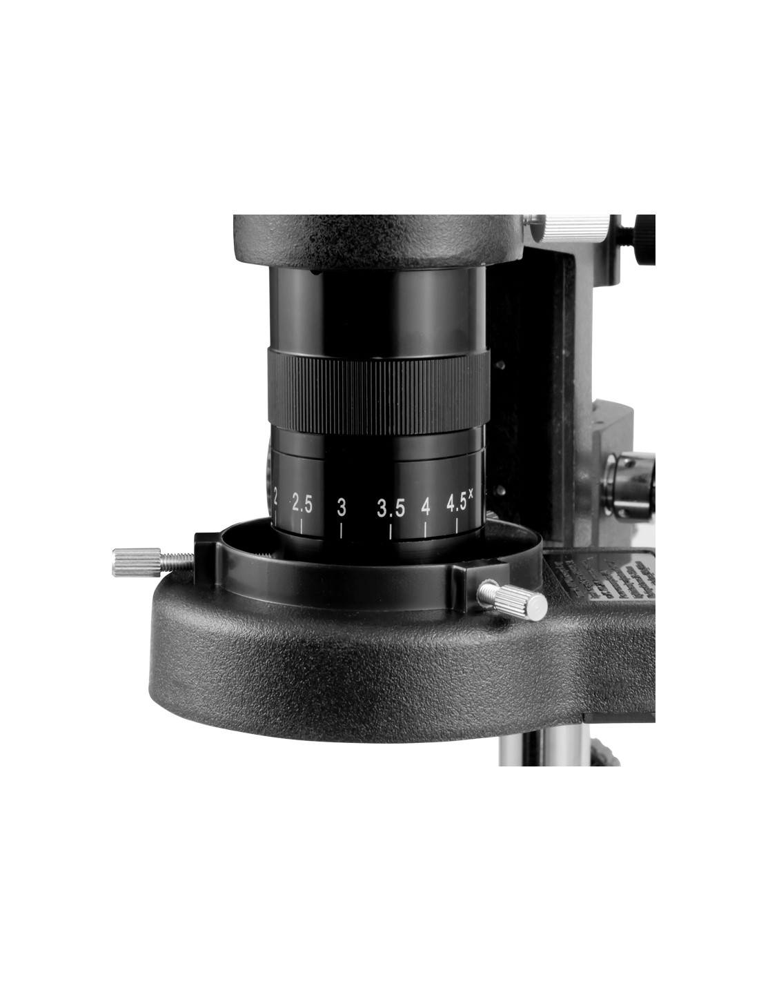 Vidéo-microscope avec grand écran de 7" / Caméra intégrée / Zoom optique de 4,5 grossissements / Éclairage LED réglable / Réglage en hauteur jusqu'à 290 mm / Vaste surface d'appui / Écran amovible