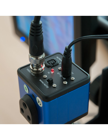 Le vidéo-microscope est un appareil polyvalent dont les domaines d'application sont vastes, ce qui permet de l'utiliser dans différents secteurs, et il s'adapte aux besoins spécifiques de chaque utilisateur. Un vidéo-microscope sert d'appui pour les flux de travail et génère des données fiables, reproductibles et quantifiables pour leur analyse et comparaison. Vous pouvez aussi utiliser le vidéo-microscope pour les recherches scientifiques. Les échantillons et le tissu peuvent être contrôlés et documentés avec précision. La reproduction de la couleur est nette et unie. Le vidéo-microscope possède un branchement vidéo qui connecte le microscope à un téléviseur, au lieu de visualiser l'image sur l'écran LCD de 7" correspondant. Cela vous donne la possibilité de commenter et d'analyser l’image visualisée avec un groupe de personnes. Vous pouvez utiliser le vidéo-microscope dans les domaines de la microélectronique, l'inspection électronique de précision, la recherche criminelle, l'inspection de bijoux et les démonstrations dans l'enseignement. Tout cela est possible grâce au fait que le vidéo-microscope est facile à manipuler, qu'il possède une vaste surface de contact et un excellent éclairage.