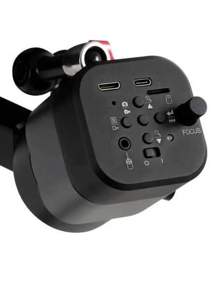 Le microscope numérique est l'instrument idéal pour les ateliers de réparation. Grâce à son bras articulé, vous pouvez situer la caméra du microscope numérique avec précision sur l'objet que vous souhaitez analyser. Le grand écran de 12,5" permet à l'utilisateur de voir avec netteté les objets visés par la caméra. L'écran du microscope numérique pour ateliers se connecte via HDMI à la caméra. La connexion USB permet de connecter le microscope numérique à un ordinateur.