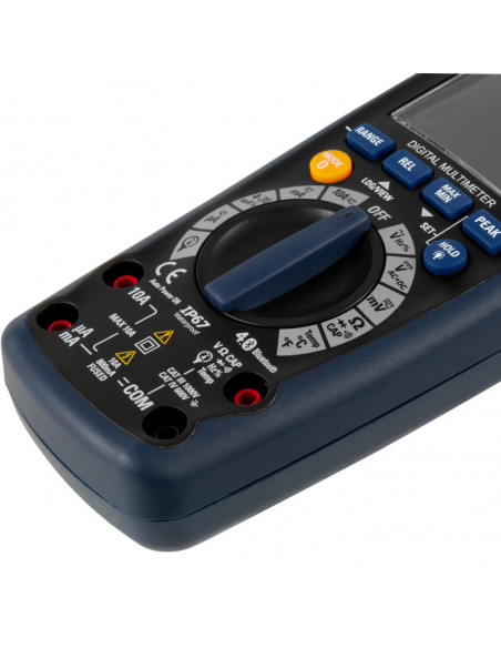 Le multimètre numérique possède une protection et est conforme à la classe de protection CATIII 1000 V. Vous pouvez facilement sélectionner les fonctions au moyen des touches et du commutateur rotatif: DCV, ACV, DCA, ACA, ohms, diodes, continuité, capacité, fréquence et température. Le multimètre numérique mesure la tension jusqu'à 1000 V AC/DC. Vous pouvez mesurer le courant de manière directe jusqu'à 10 A AC/DC et avec la bobine de Rogowski jusqu'à 3000 A AC. La protection IP67 du boîtier du multimètre numérique permet une utilisation dans des milieux industriels défavorables.