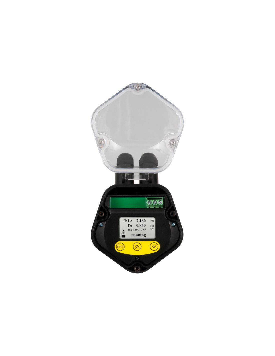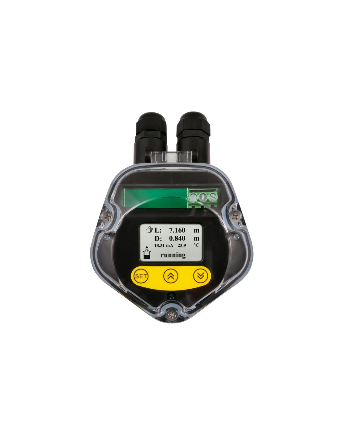 Indicateur de niveau à ultrason avec sortie 4-20 mA et indicateur numérique externe / Connexion à 2 fils / Indication de la température ambiante / Indication du niveau et de la distance / Profondeur de mesure: 10 m L'indicateur de niveau à ultrason est un dispositif idéal pour déterminer le niveau de remplissage d'un silo. Grâce à son signal de sortie de 4-20 mA, l'indicateur de niveau a ultrason permet d'être connecté au contrôle de processus d'une usine. Vous pourrez ainsi continuer à traiter le signal généré par l'indicateur de niveau à ultrason. Avec ce dispositif, vous pourrez savoir, à tout moment, si le silo est suffisamment rempli. Le niveau élevé de protection IP de l'indicateur de niveau à ultrason garantit la préservation des composants électroniques en cas de fuite d'eau. La vaste plage de mesure de 10 m permet d'utiliser l'indicateur de niveau à ultrason pour contrôler les silos de plus grande taille. Selon le type d'application, l'indicateur de niveau à ultrason peut montrer comme valeur de mesure, le niveau ou la distance entre le milieu et le capteur. Ses vastes fonctions et aspects de sécurité font de l'indicateur de niveau à ultrason un dispositif idéal pour la surveillance des systèmes de silos. L'indicateur de niveau utilise le signal de processus 4-20 mA pour l'évaluation du signal. La possibilité de moduler librement le signal d’entrée permet un usage polyvalent de cet indicateur de niveau à ultrason. Le grand écran LED de 4 chiffres permet de lire facilement les valeurs de mesure. L'alimentation de 24 V en option, pour alimenter les capteurs permet une connexion directe de capteurs ou émetteurs à 2 fils, ce qui simplifie l'utilisation de ce mesureur de niveau. La configuration se fait à travers le logiciel gratuit LPCon. Les réglages peuvent être effectués ou lus dans l'indicateur de niveau, au moyen de l'adaptateur de programmation PD14. Les configurations créées avec le logiciel peuvent être sauvegardées et récupérées.