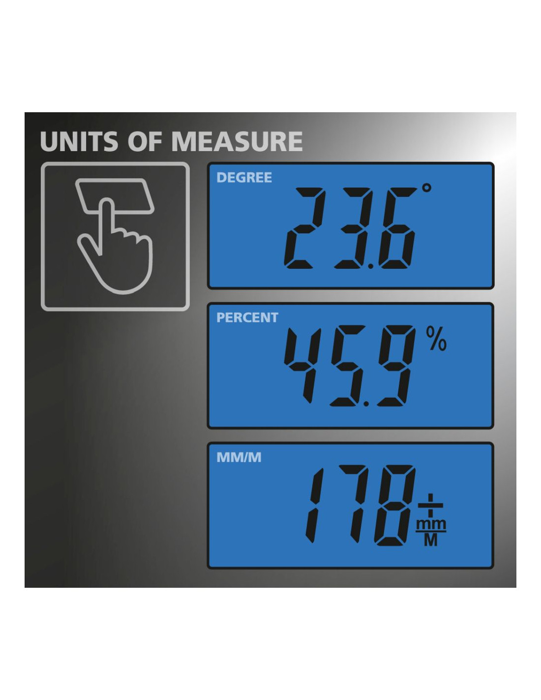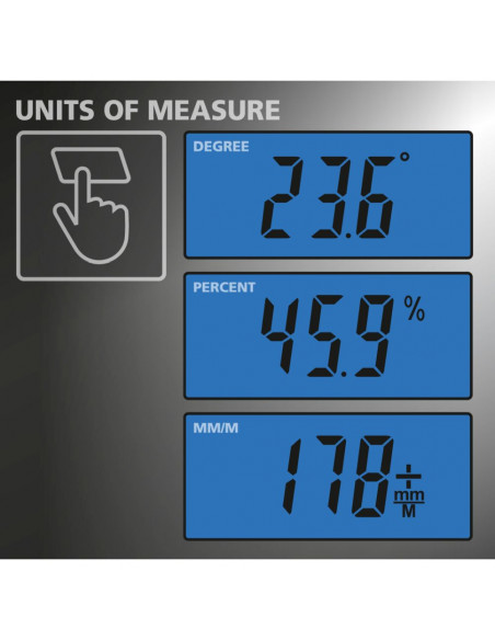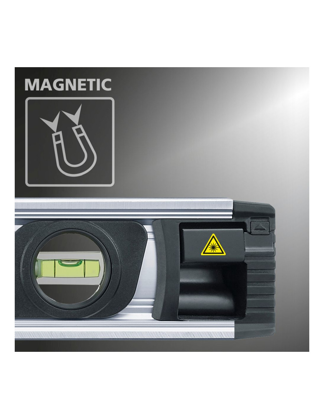 Le niveau à bulle électronique numérique permet l’alignement exact à l’horizontale et à la verticale et le report des angles. L’appareil dispose d’un laser à lignes vertes pour l’allongement optique de la surface de mesure. L’utilisation est pratique grâce à l’afficheur pivotant et au guidage acoustique. La fixation magnétique permet de travailler les mains libres sur les constructions métalliques.