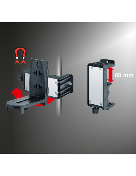 Laser vert à lignes croisées avec fonction d‘aplomb claire, mode récepteur manuel, fixation murale et support de serrage magnétiques