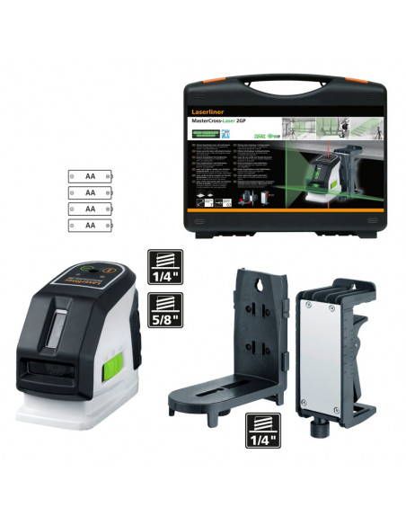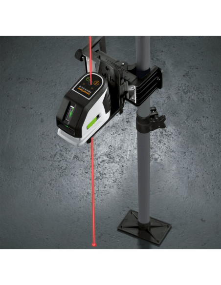 Le MasterCross-Laser 2GP permet un alignement précis des lignes horizontales, des lignes verticales et des inclinaisons. Le laser d’aplomb supplémentaire permet de travailler simultanément au sol et au plafond. L’instrument de mesure garantit une grande visibilité, un alignement automatique rapide et de nombreuses possibilités de fixation. Il est également possible de l’utiliser avec un trépied.