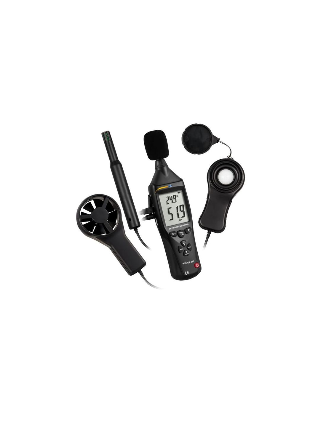 Notre analyseur de bruit multifonctions PCE-EM 883 réunit toutes les caractéristiques nécessaires pour pouvoir mesurer les conditions environnementales avec un seul dispositif. Pour cela, le PCE-EM 883 est capable de mesurer une grande variété de paramètres à une vitesse inégalable. Avec cet analyseur de bruit vous pourrez mesurer le son, la lumière, la vitesse du vent, la température et l'humidité relative à travers des capteurs que vous lui connecterez. Grâce à cet analyseur de bruit vous pourrez donc effectuer une analyse complète de l'environnement dans lequel vous vous trouvez.