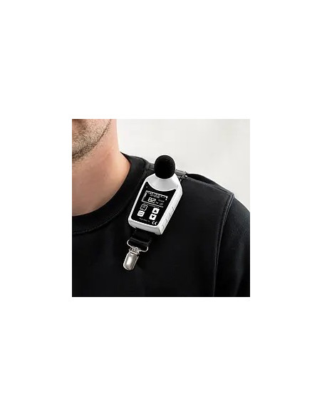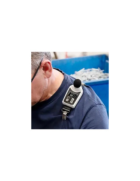 Pour fixer le sonomètre de façon optimale, deux pinces crocodiles sont inclues, ce qui permet d’accrocher l’appareil sur les vêtements du travailleur. La distance entre l’oreille et le sonomètre doit être comprise entre 10 et 15 cm. En option, vous pouvez demander un certificat d’étalonnage ISO pour ce sonomètre.