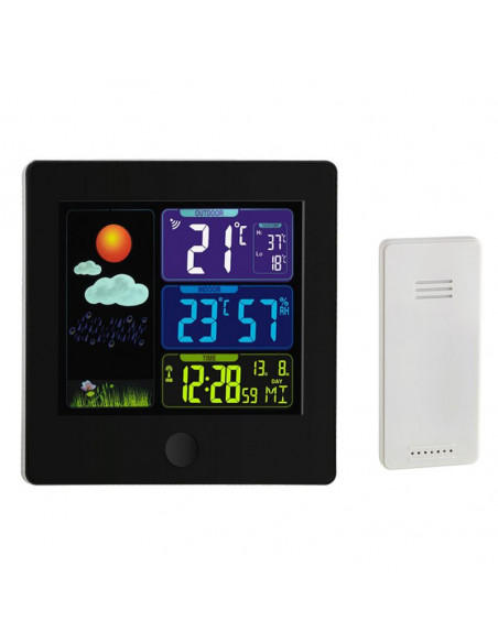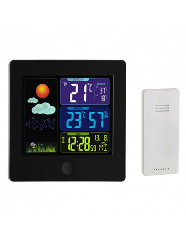 STATION MÉTÉO LCD COULEUR AVEC FAÇADE NOIRE - THERMOMÈTRE INT./EXT. / HYGROMÈTRE