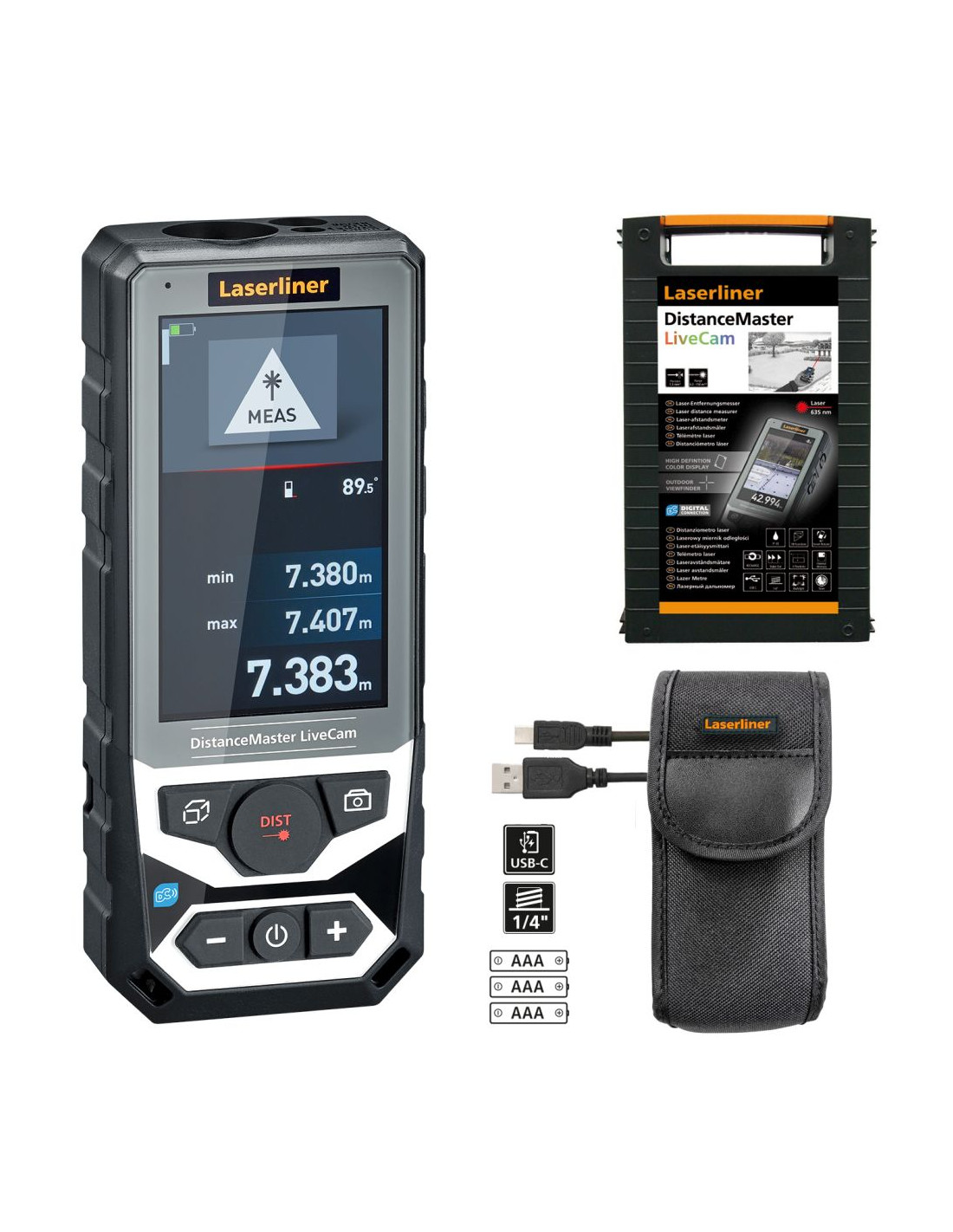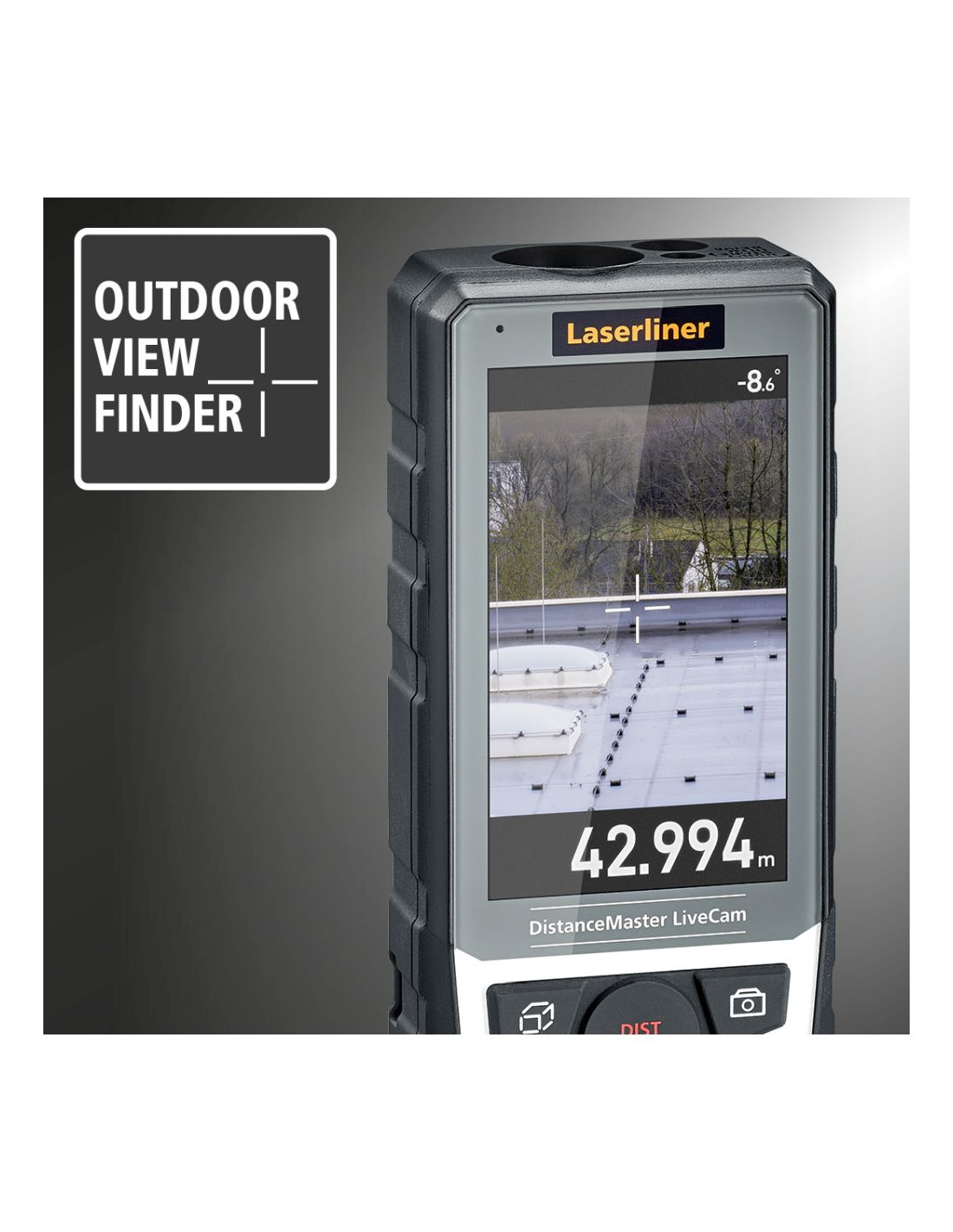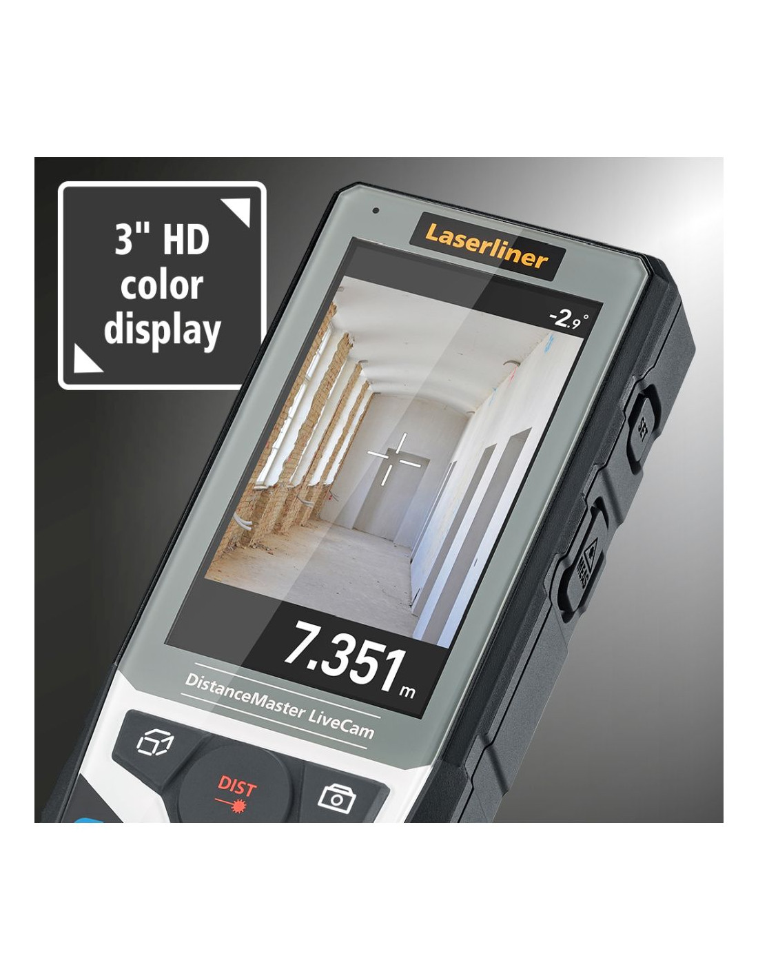Ce télémètre laser multifonctionnel permet le calcul de surfaces rectangulaires, circulaires, du volume circulaire, de surfaces triangulaires et de surfaces trapézoïdales. Il est également possible d’effectuer des mesures point vers point et de déterminer indirectement la hauteur. Une caméra HD à zoom 4 fois grossissant automatique sert d’aide de visée efficace pendant la mesure lorsque le point laser est peu visible à grande distance ou en cas de mauvaise visibilité. En raison de la grande plage de mesure pouvant atteindre 150 m, l’appareil est idéal pour de grandes distances et peut être également utilisé à l'extérieur. Possédant le type de protection IP 65, il est bien protégé des projections d’eau et de la poussière. Il est possible de sélectionner le point de référence du boîtier (à l’avant/à l’arrière/le trépied). Une mesure rapide, la fonction minuterie pour un déclenchement automatique et l’écran bien visible rendent l’utilisation de l’appareil agréable. 50 emplacements de mémoire sont disponibles à des fins de documentation. La connexion numérique permet de transférer rapidement les données mesurées sur des terminaux mobiles grâce à l’application gratuite MeasureNote. L’appareil s’éteint automatiquement pour économiser de l’énergie en cas de non-utilisation.