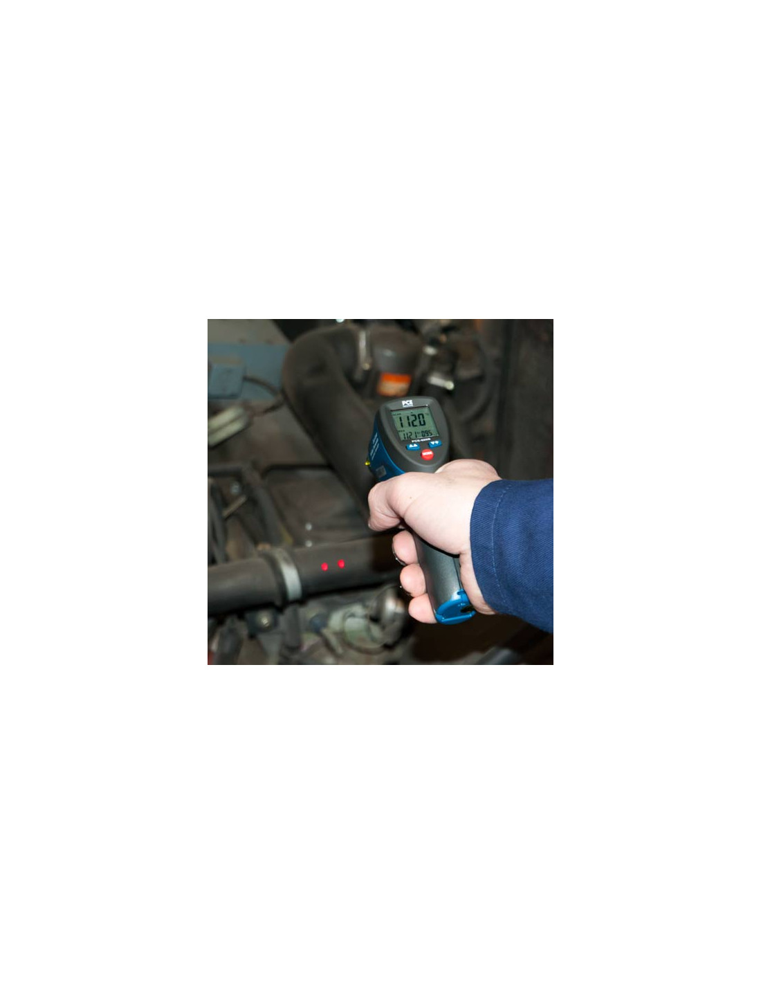 La plage de température mesurable est de -50 à +1000 ºC. Cela couvre une large gamme, ce qui fait de ce thermomètre infrarouge un appareil multifonction. Le champ d'utilisation du thermomètre infrarouge est assez large. Ces appareils s'utilisent dans de nombreux processus industriels, dans des garages, et aussi par des amateurs. Une utilisation très commune est l'entretien de différentes installations de production. Il sert aussi à contrôler la chaine du froid et des pièces de travail.