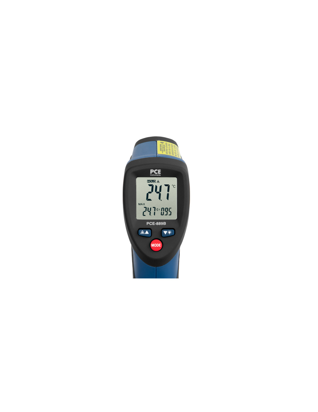 Nos équipes d'expert de la mesure ont sélectionné pour vous cet instrument de mesure à la fois précis, robuste et en provenance de la marque PCE, acteur reconnu de la mesure. Le thermomètre infrarouge est idéal pour le domaine privé et industriel grâce à son excellent rapport qualité/prix. Le thermometre infrarouge est un mesureur de température sans contact. Le rayon laser projecte des points très clairs, ce qui rend la mesure de température à distance facile. La bonne relation entre la distance et le point de mesure permet à l'utilisateur de mesurer depuis une certaine distance. Vous pouvez aussi régler les degrés d'émissivité.