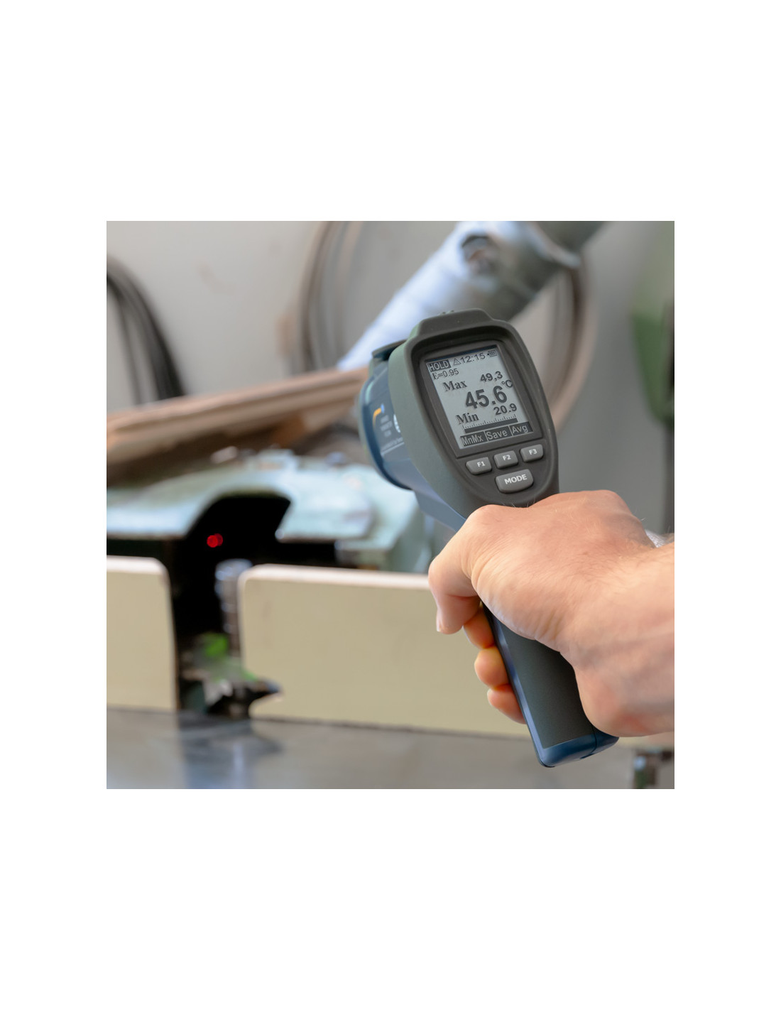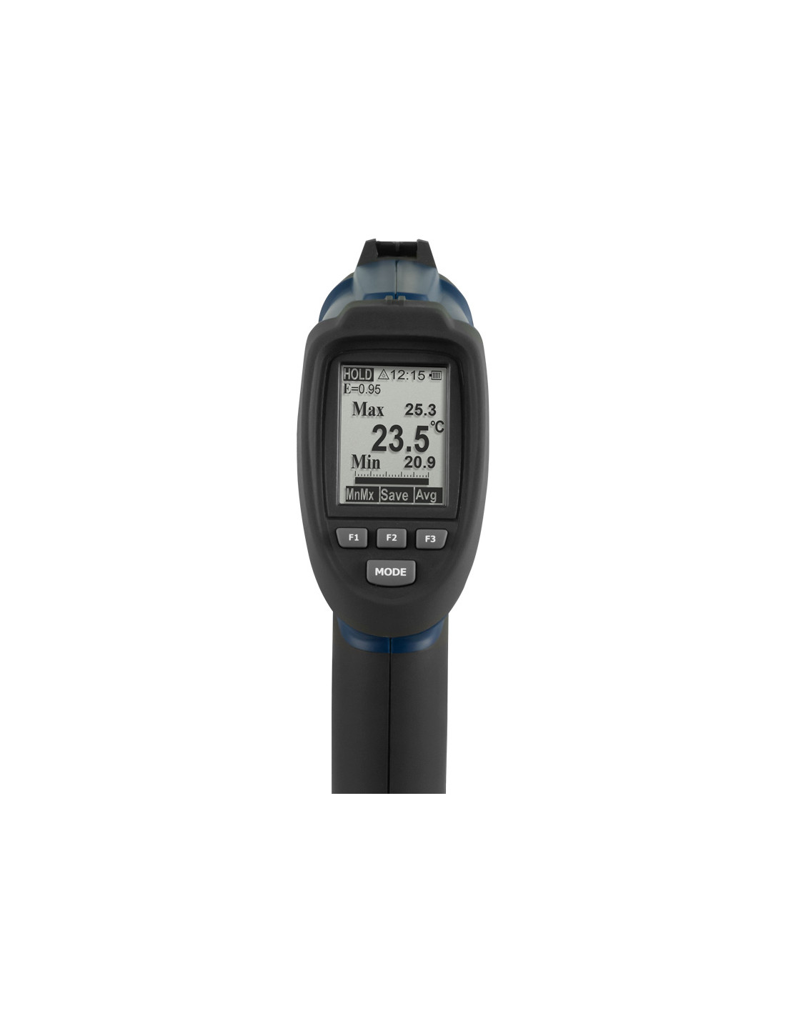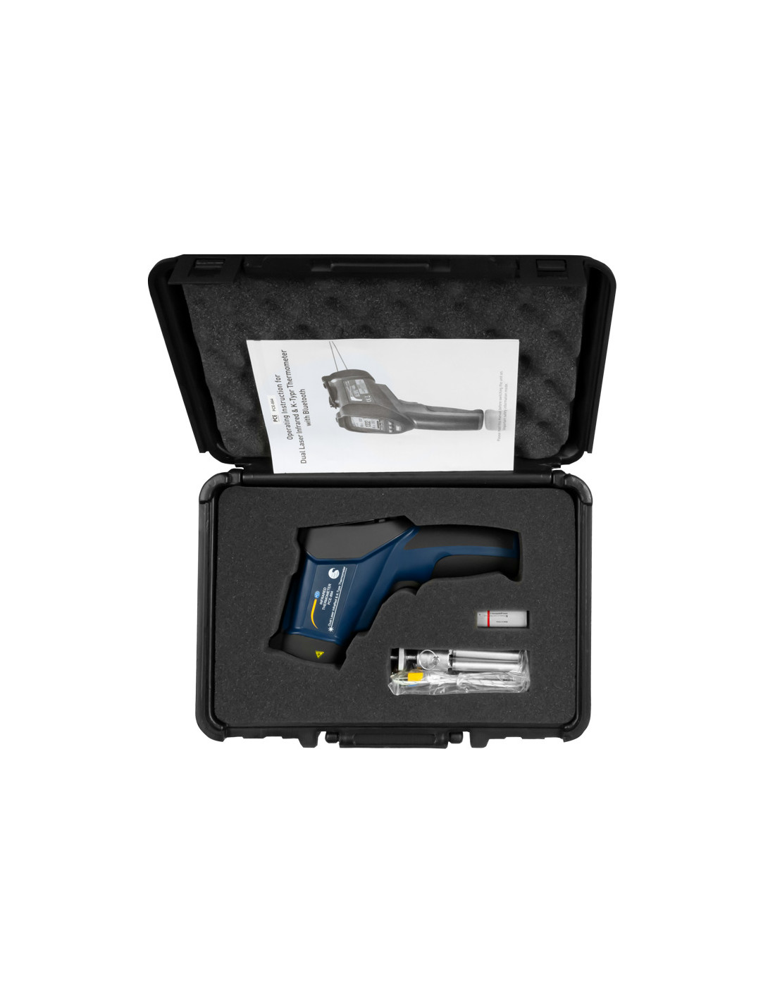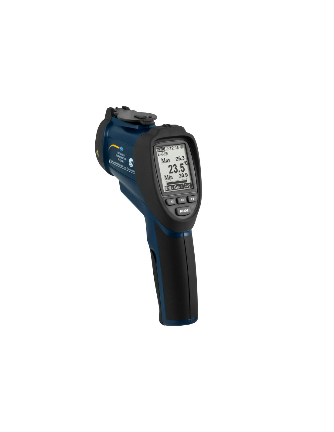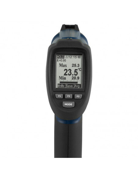 Thermometre avec entrée pour thermocouple / Double rayon laser / Court temps de réponse / Degrés d'émissivité réglables / Écran LCD rétroéclairé / Bluetooth / Fonctions: HOLD, MAX, MIN, DIF, AVG, LOCK