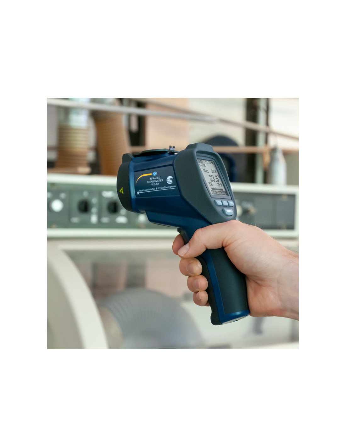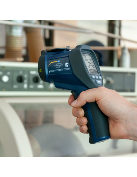 Nos équipes d'expert de la mesure ont sélectionné pour vous cet instrument de mesure à la fois précis, robuste et en provenance de la marque PCE, acteur reconnu de la mesure. Le thermomètre PCE-894 à double rayon laser mesure la température sur une plage allant de -50 à +1850 ºC. Le thermometre a une résolution optique de 50 : 1, ce qui permet de mesurer, sans contact et avec une grande précision, la température de petites surfaces.
