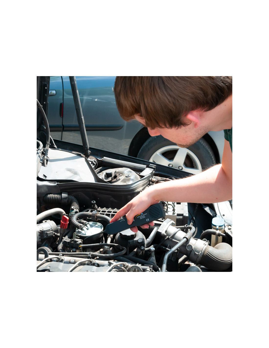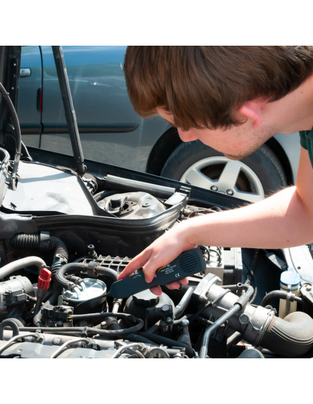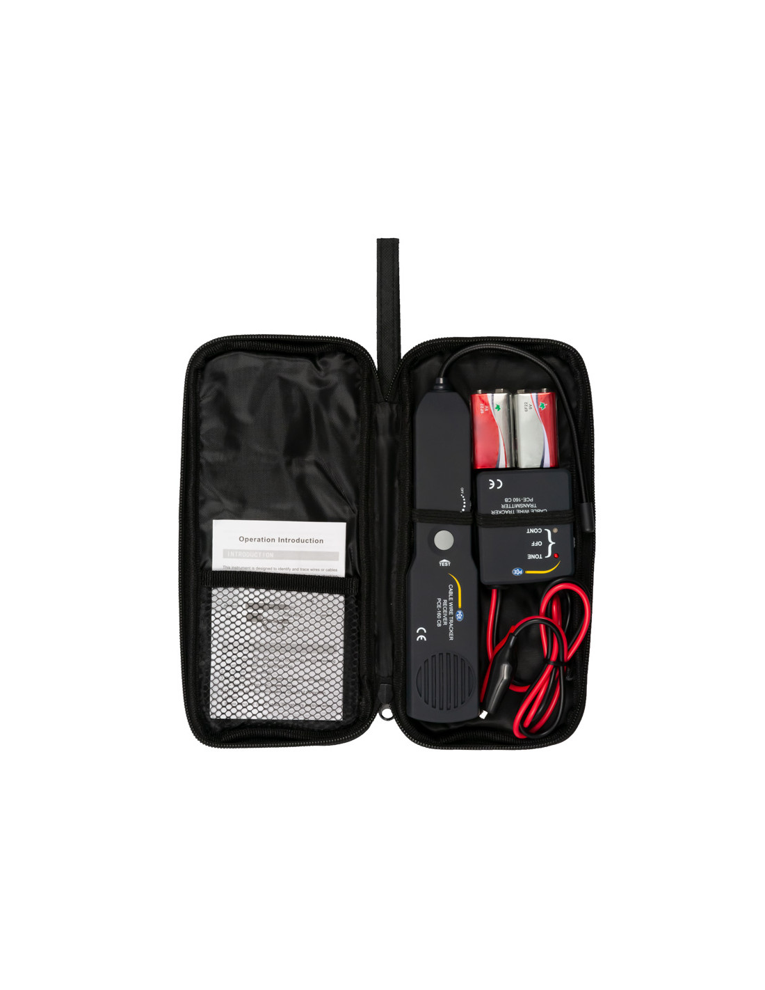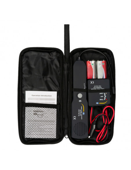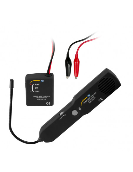 Ce testeur de câbles permet de positionner le capteur dans des endroits à accès difficile. Ce testeur de câbles s'utilise par exemple dans le secteur automobile. Il suffit de connecter les pinces crocodile de l'émetteur du détecteur de câbles à la ligne que vous souhaitez suivre. L'émetteur génère un signal d'impulsion qui peut être détecté par exemple dans un groupe de câbles. Cela permet de localiser le câble ou la ligne souhaitée rapidement. En plus de la localisation des câbles, ce testeur de câbles permet d'effectuer un test de continuité. Pour cette fonction, il est nécessaire d'utiliser l'émetteur. Dans ce cas il est également connecté à la ligne. La fonction de test de continuité permet à l'utilisateur de savoir s'il existe un circuit fermé.