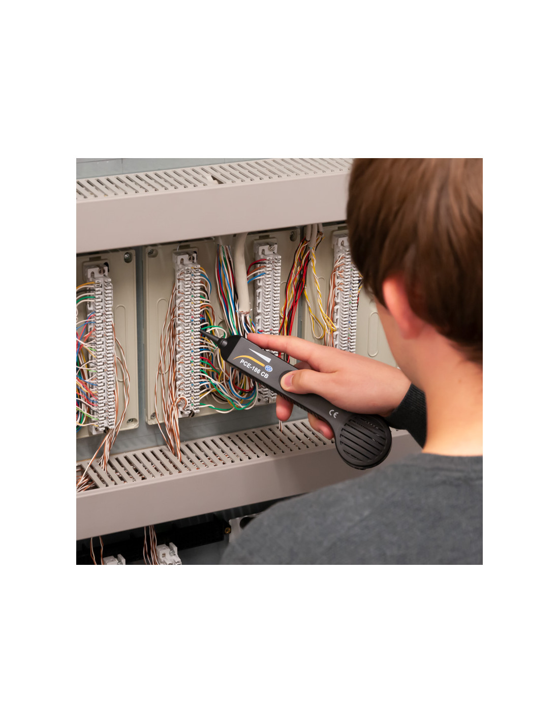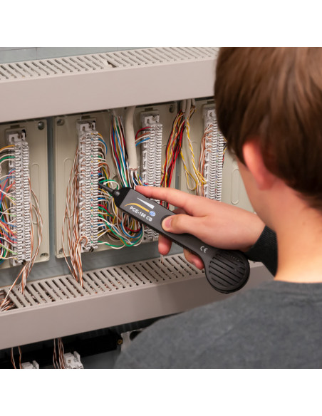 Détecteur de câbles avec testeur de tension / Pointe non conductrice du capteur / Connexion pour écouteurs / Connecteur RJ-11 avec pinces crocodile / Pour la détection de ruptures de câbles et de lignes / Pour lignes sans tension / Sac de transport