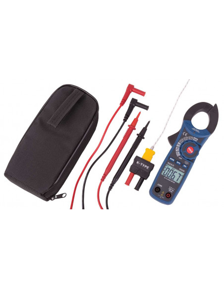Wattmètre c.a. compact avec détecteur de tension sans contact et thermomètre de contact intégré.